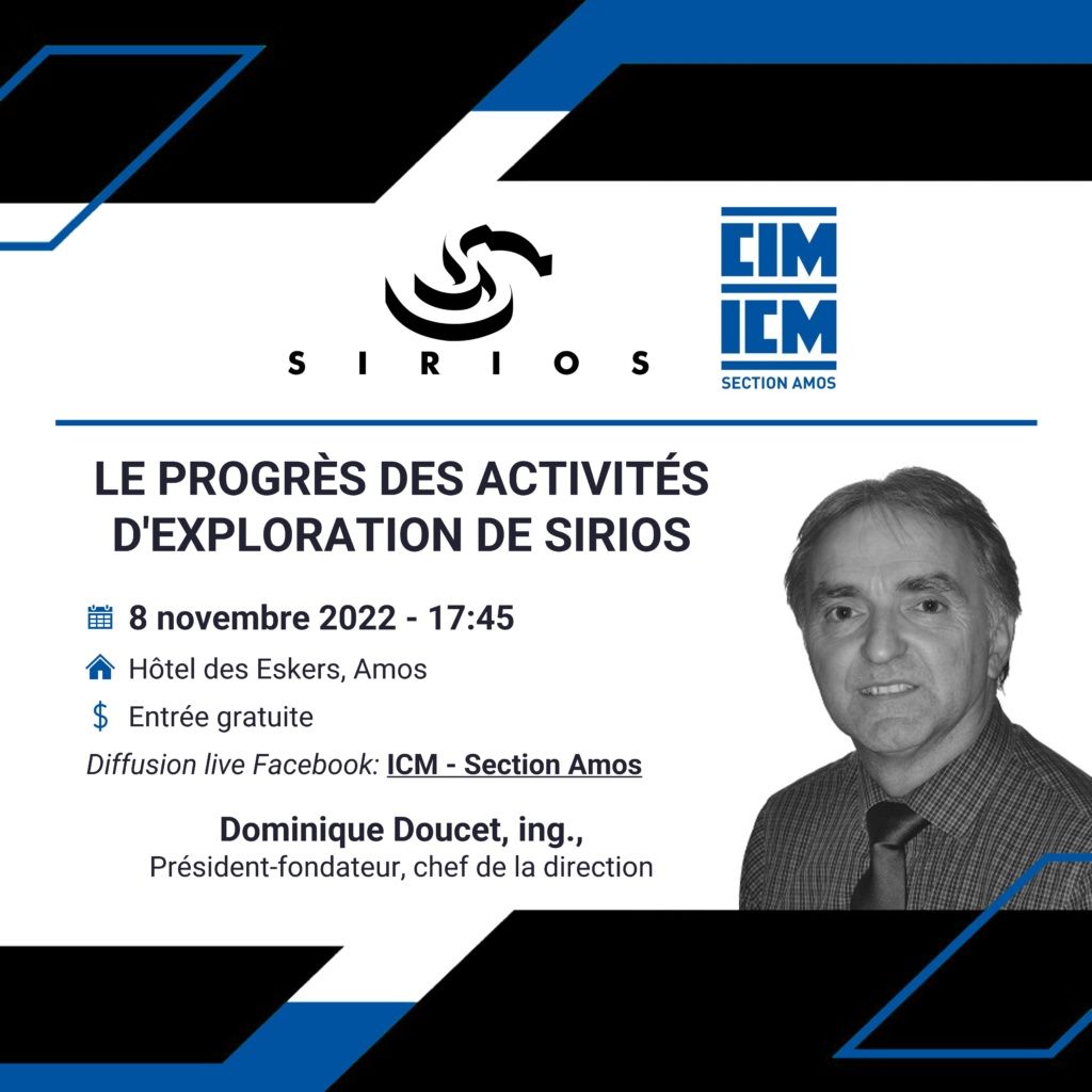 Résumé : La présentation donnera un aperçu des développements en cours et à venir sur les projets d'Eeyou Istchee Baie James de Sirios avec une emphase sur son projet phare aurifère Cheechoo.