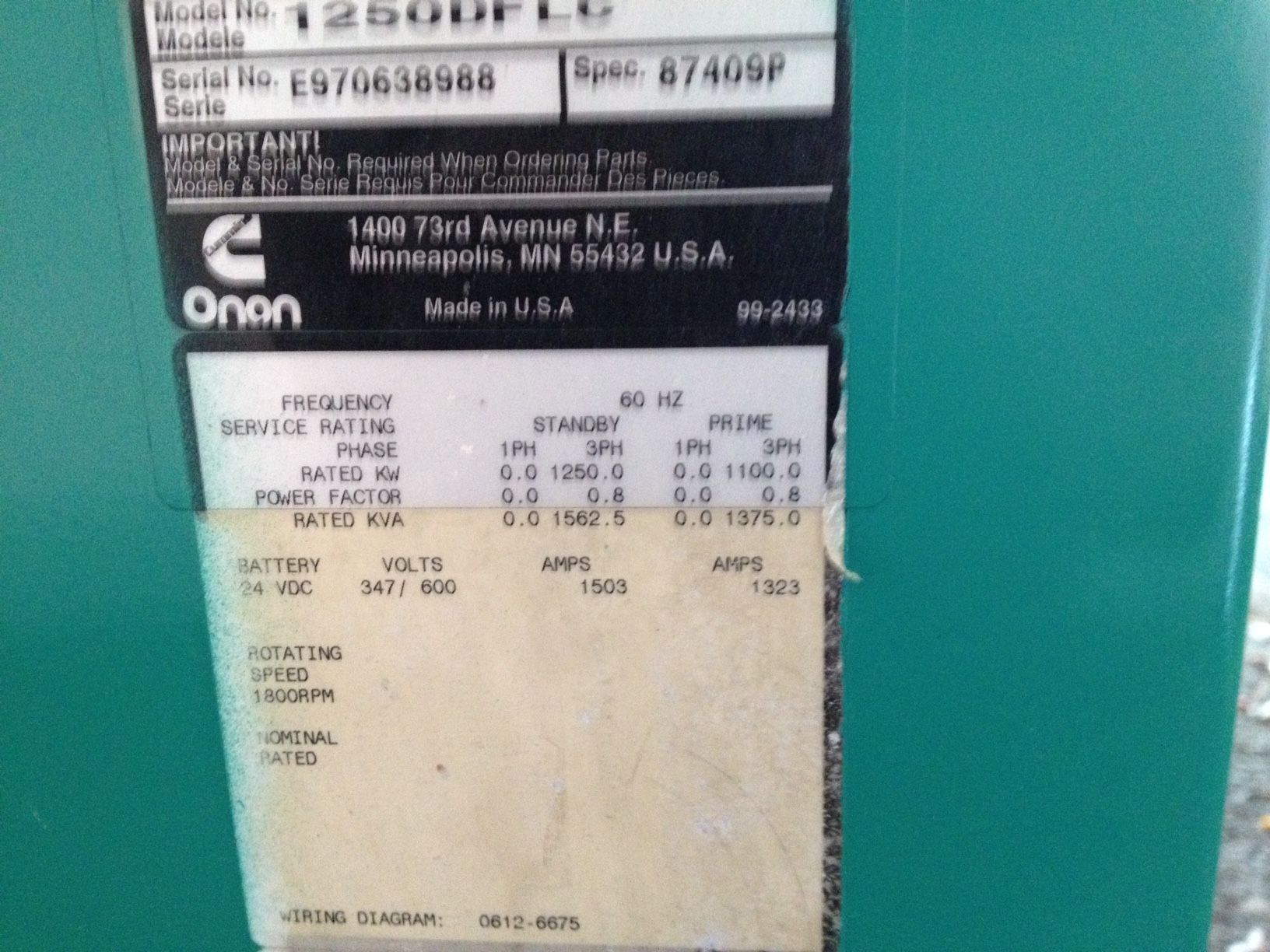 Génératrice CUMMINS KTA50 1100 KW Prime Power Gen Set VENDU / SOLD
