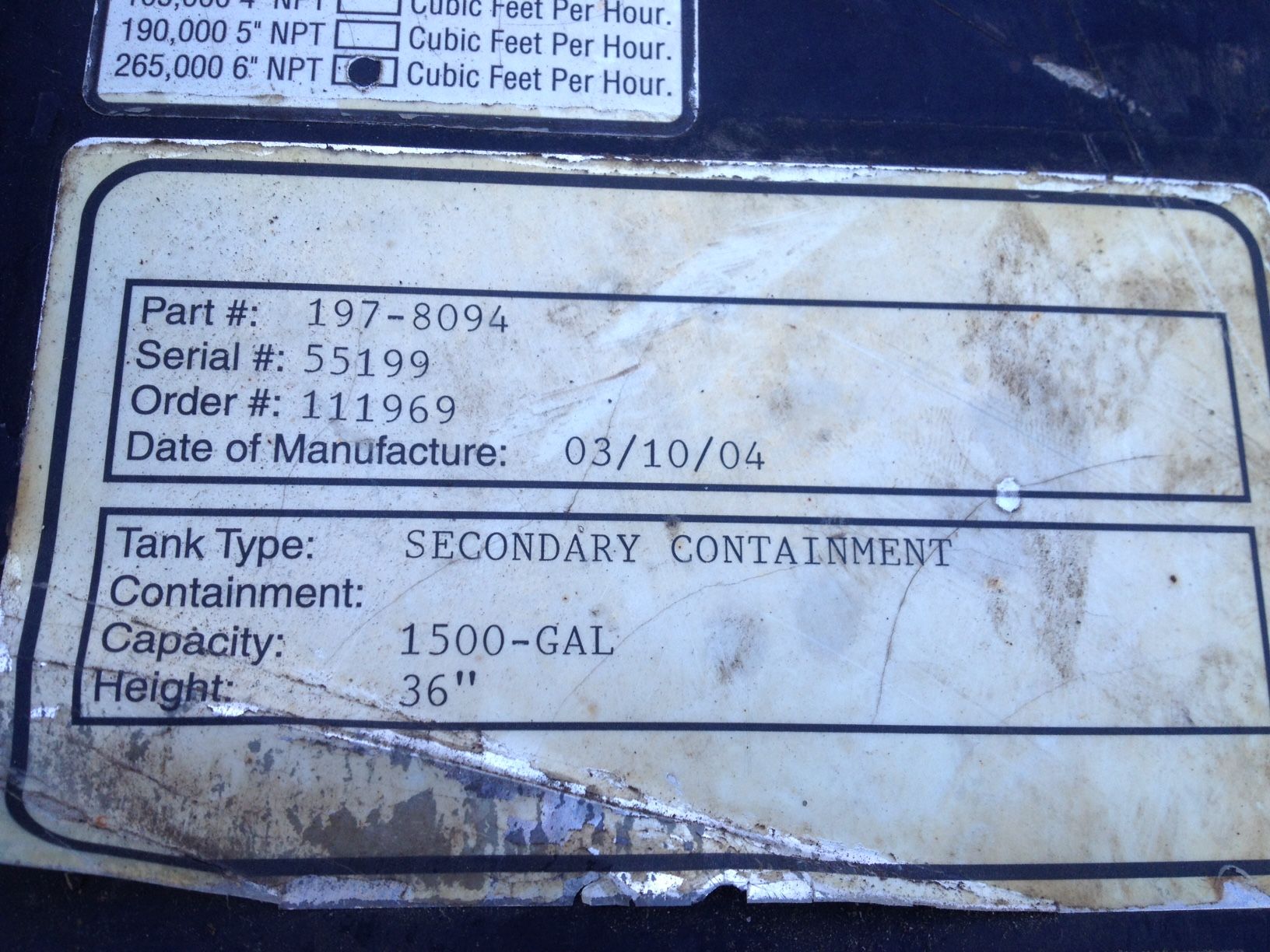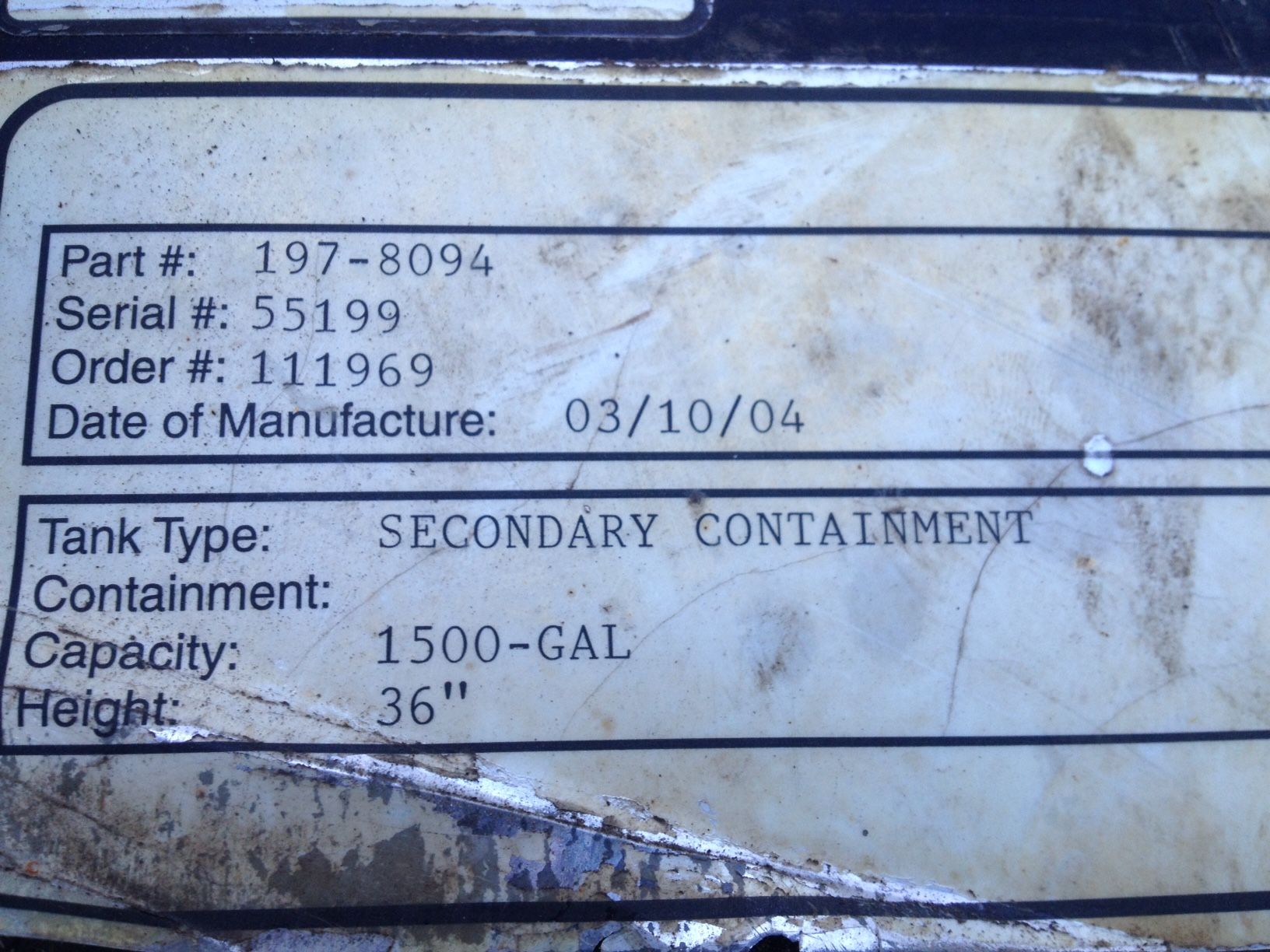 Réservoir 6000 L. usagé, bonne condition.