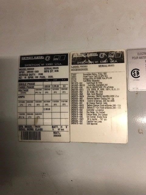 2000 kw, 600/347 volts, . MTU 16V4000,